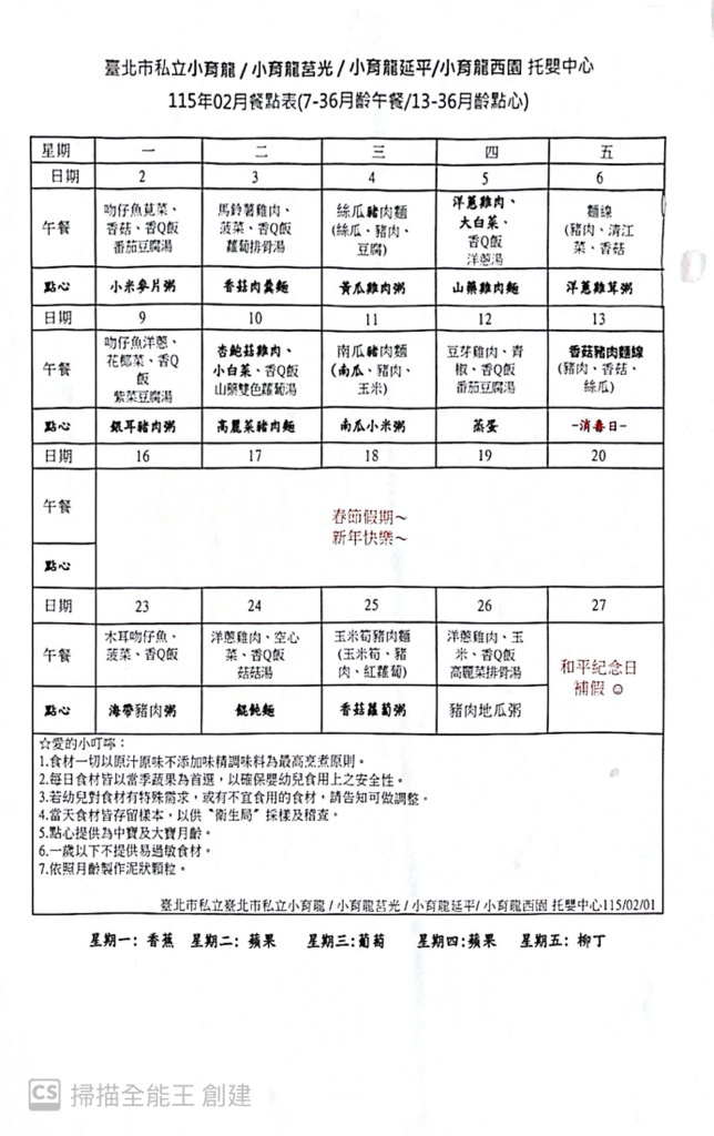 115年2月菜單